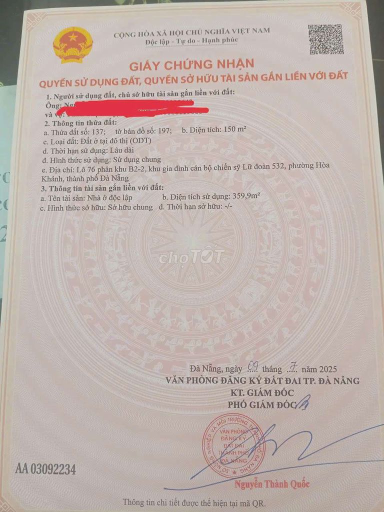 Diện tích đất: 150 m2