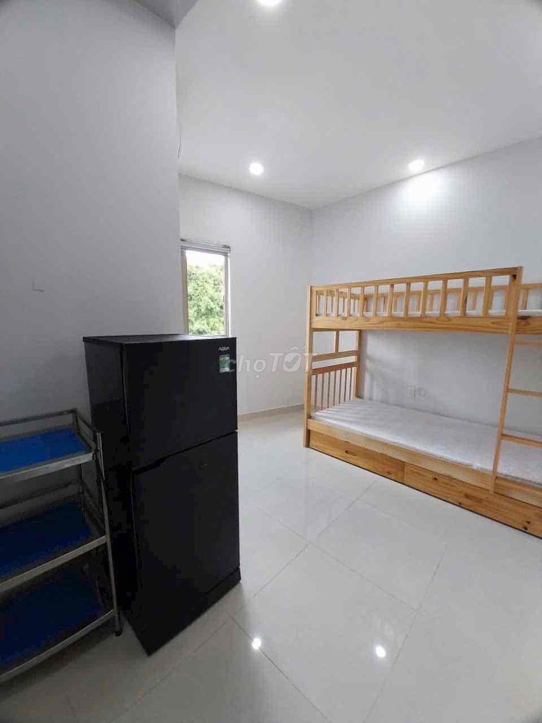 - Nội thất cao cấp: Giường gỗ đơn hoặc giường gỗ 02 tầng (tùy khách hàng chọn), nệm cao su, máy lạnh, tủ lạnh, máy nước nóng, quạt treo tường, máy giặt, thiết bị vệ sinh cao cấp.