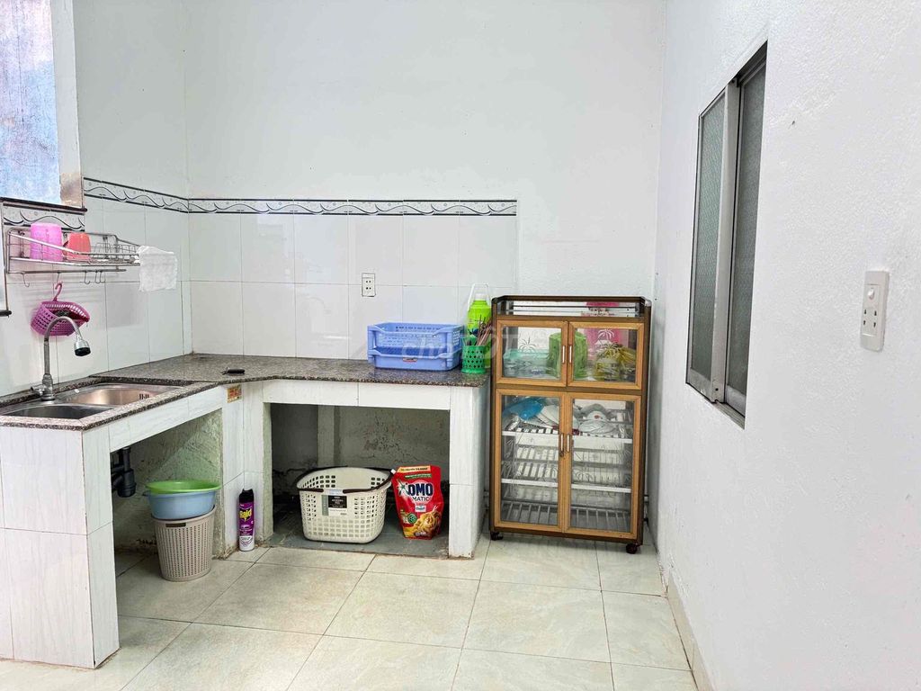 Có 1 phòng ngủ (máy lạnh), 1 phòng khách ( có bộ salong gỗ), 1 phòng bếp, 1 nhà vệ sinh, sân rộng để ô tô thoải mái, vỉa hè rộng 8m rất thuận tiện cho làm văn phòng, cửa hàng buôn bán...