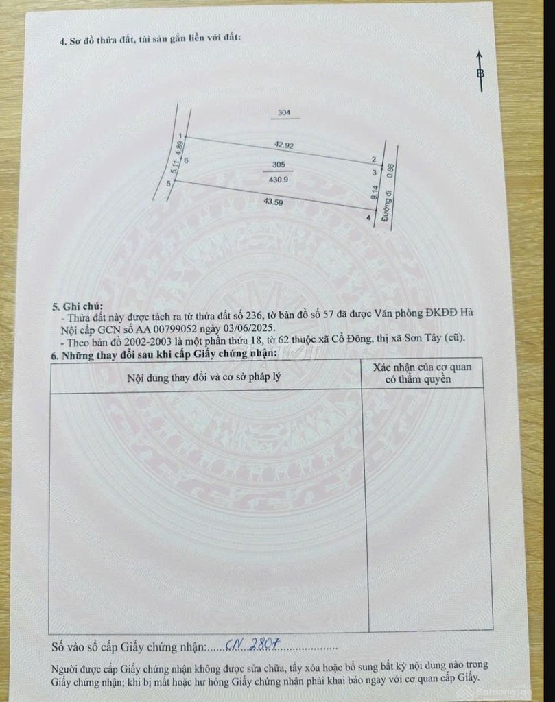 Đất nền tại Đồng Trạng, Xã Cổ Đông, Sơn Tây, Hà Nội, có diện tích 430 m², giá 4,9 tỷ VND.