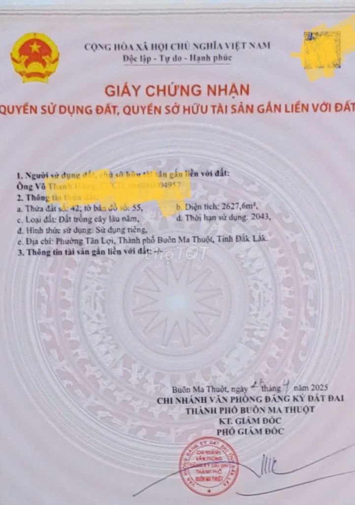 Dc: Đường Hà Huy Tập, Phường Tân Lợi, Thành phố Buôn Ma Thuột
