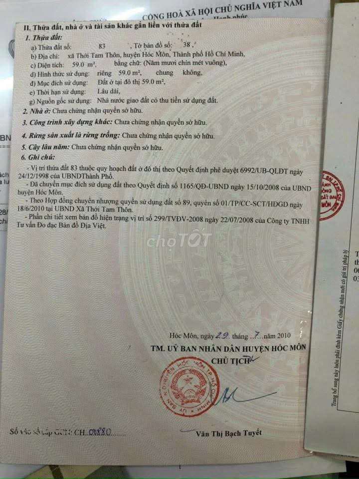 Dc: Đường Trần Thị Bốc, Xã Thới Tam Thôn, Huyện Hóc Môn