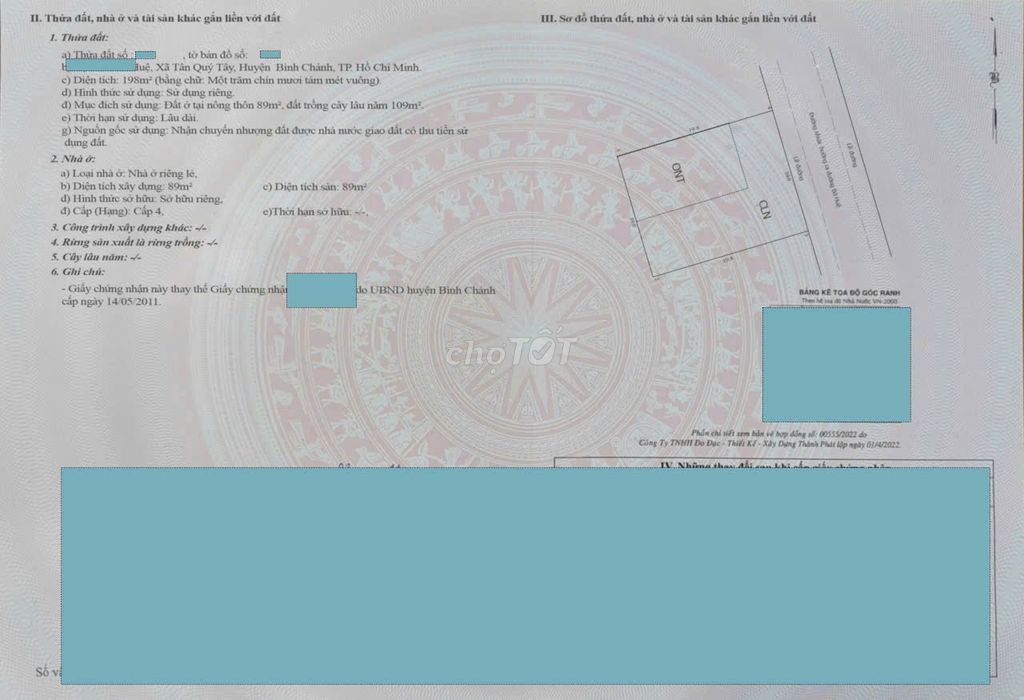 Diện tích Tổng 190m, trong đó gần 90m thổ cư.