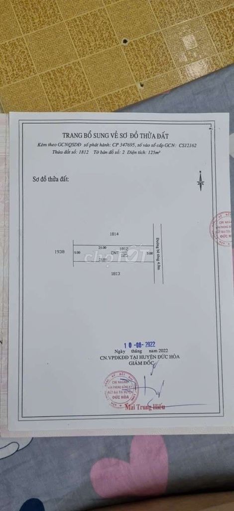 Chính chủ cần bán đất thổ cư 125m2, Đức Hòa, Long An, đã có sổ.
