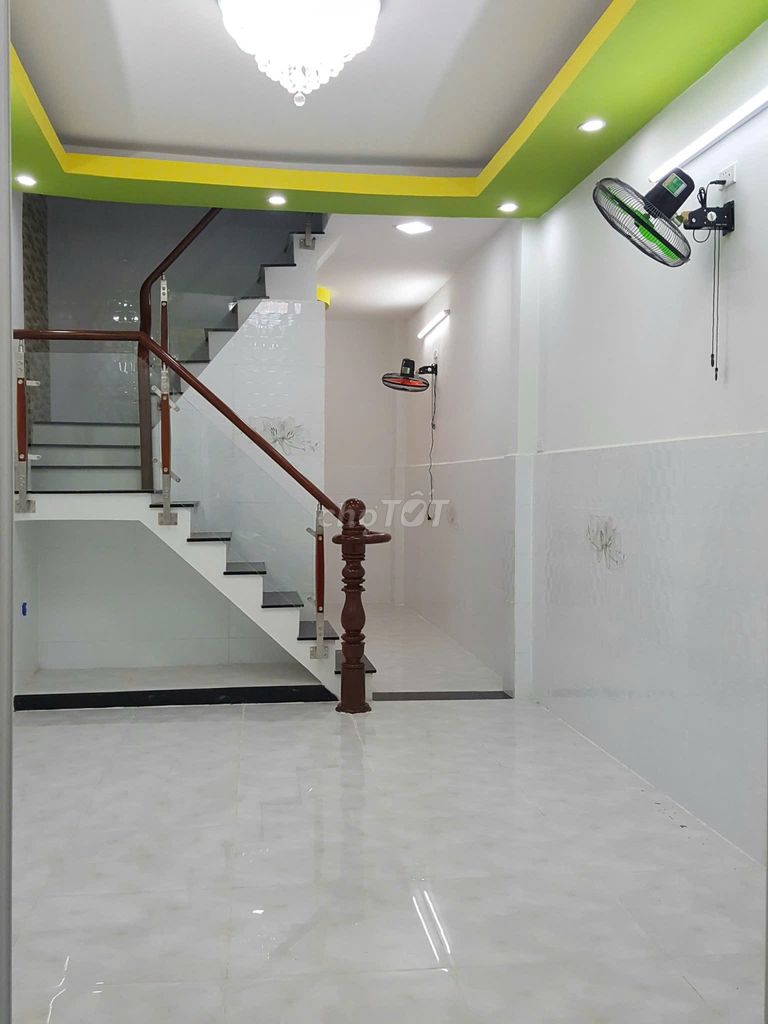 Nhà 1 trệt, 1 lầu, 1 phòng khách, bếp, 2 phòng ngủ. Hình chụp thực tế.