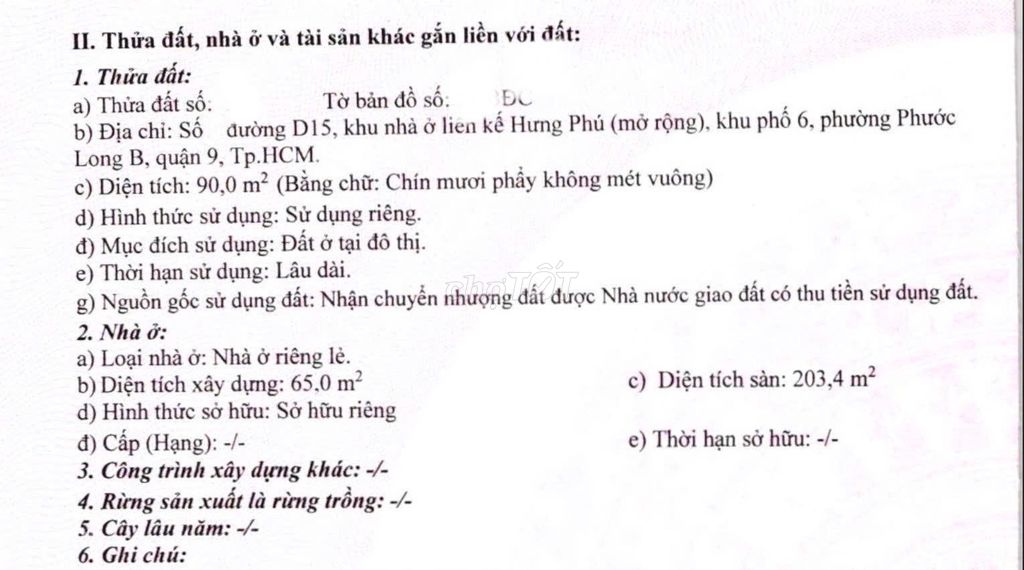 Dc: Đường D15, Phường Phước Long B (Quận 9 cũ), Thành phố Thủ Đức