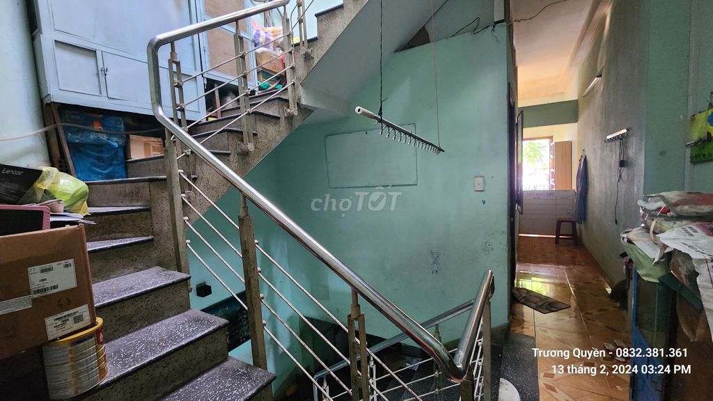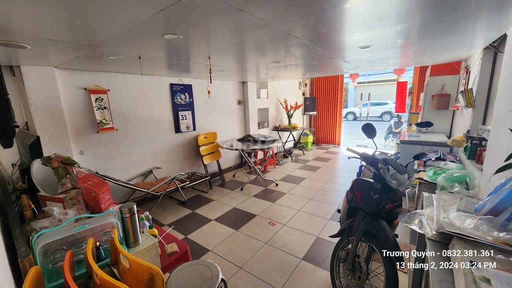 Mặt tiền 3m4; mặt hậu 6m. 2 lối cửa ra vào độc lập.