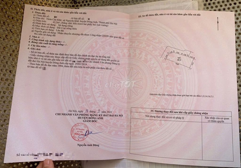 Thông tin cơ bản và Pháp lý rõ ràng Vị trí: Xã Nguyên Khê, huyện Đông Anh, Hà Nội (khu vực đang có tốc độ phát triển hạ tầng cao).