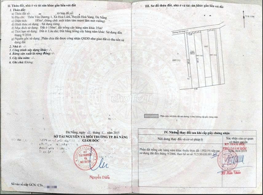 * Diện tích trong sổ : 185 m2 (5x37)m.