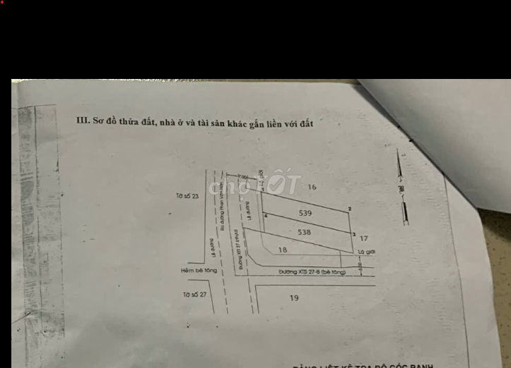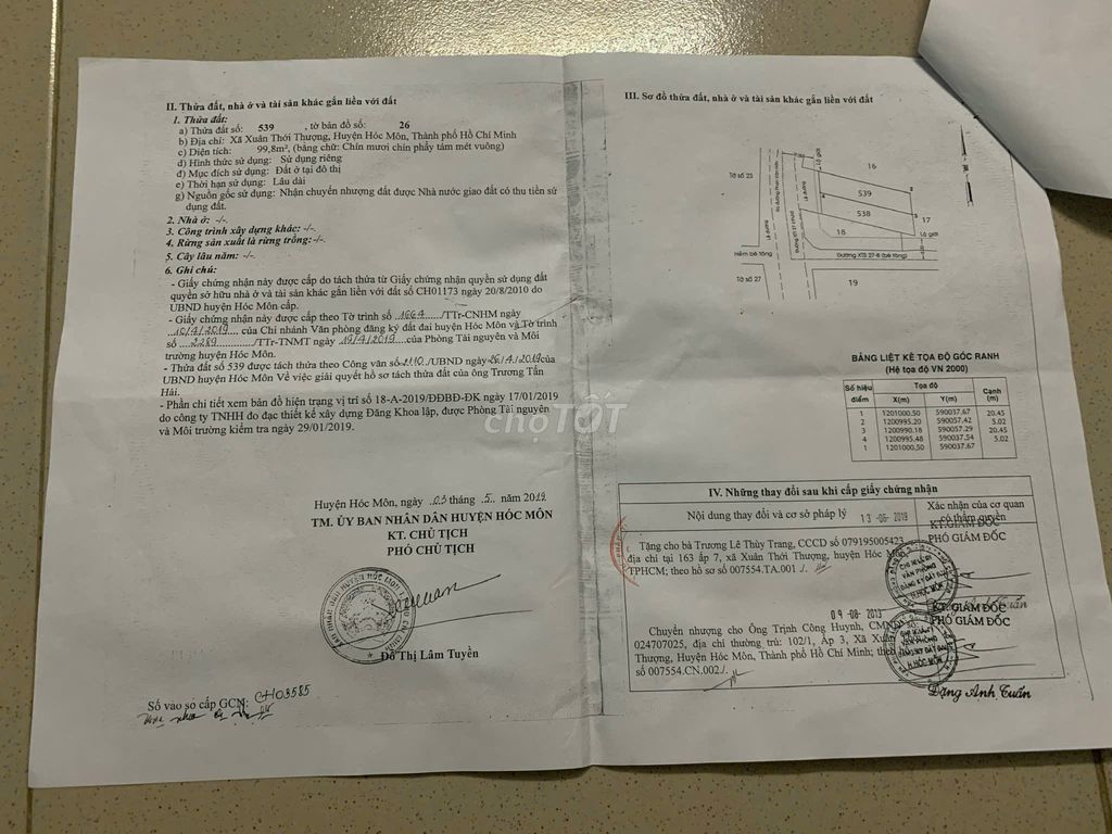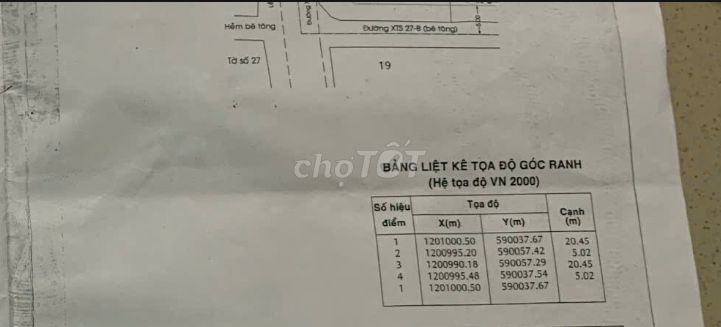 Bán đất mặt tiền hẻm xe hơi, đường XTT-27 Diện tích đất 5x20 = 100m2 full thổ cư, giấy tờ sổ hồng hợp lệ, công nhận đầy đủ