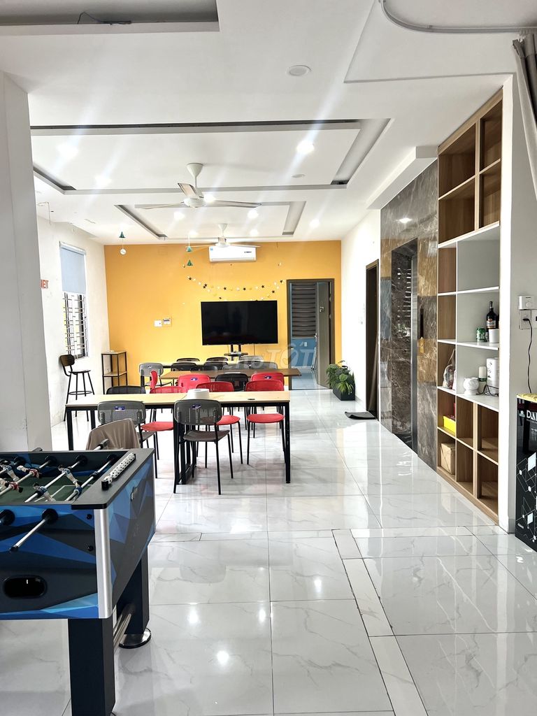 Tầng 3 có phòng họp, 2wc, điều hoà, quạt trần, màn rèm đầy đủ.