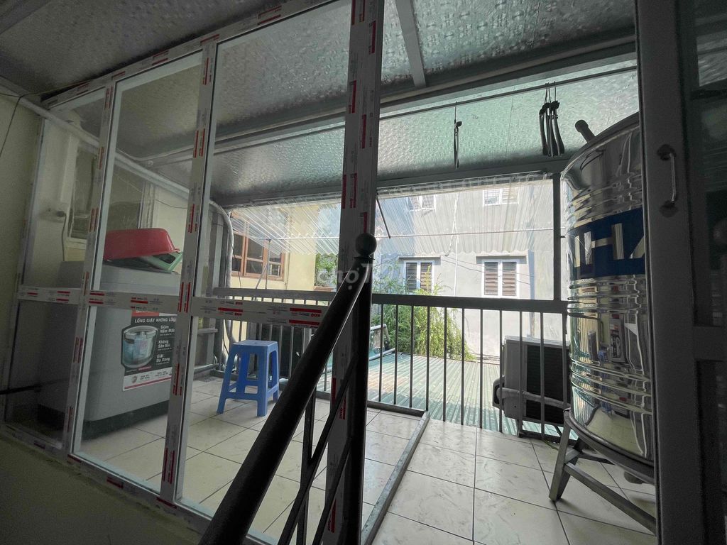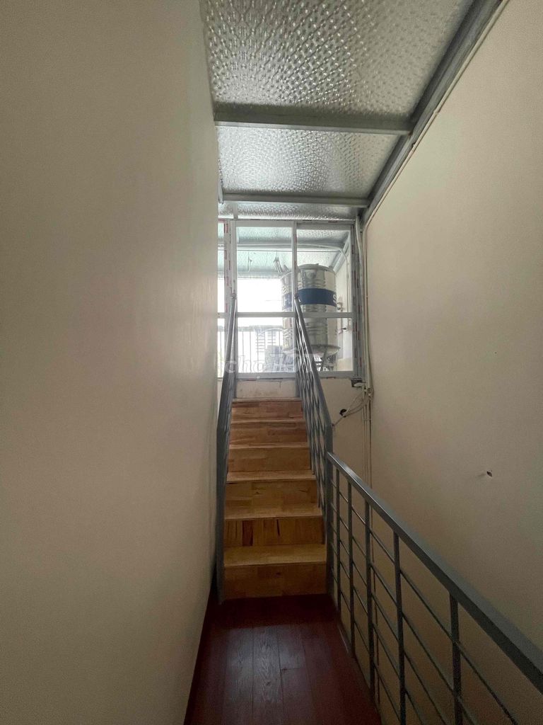 Hiện trạng: 1 tầng + lửng, sân trước có mái, phòng khách, bếp + WC, thang thép lên lửng, khu giặt phơi riêng.