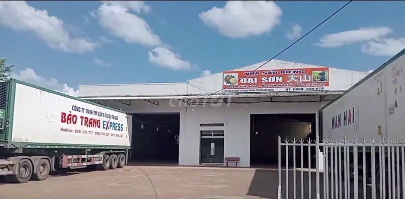 - Hạ tầng: Cơ sở hạ tầng kiên cố, sàn bê tông từ sân vào trong, tường gạch, khung sắt mái tôn, cửa cuốn rộng xe tải chạy vào tận kho, có 03 phòng làm việc, 01 bếp, 01 WC.