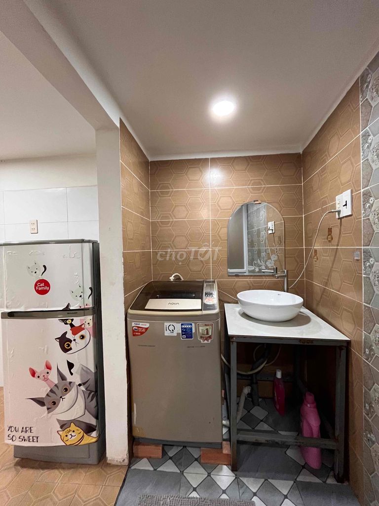 Nhà đẹp, thiết kế hiện đại, lối vào dãy nhà rộng 3m. Tiện nghi đầy đủ: máy lạnh, máy giặc, tủ lạnh, tủ bếp, tủ áo, chỗ đậu xe hơi… 1 phòng ngủ tầng lửng, 1 phòng bếp + ăn, 1WC, không gian yên tỉnh. Miễn phí wifi. Khu vực an ninh cao, có bảo vệ trực cổng, camera quan sát 24/7. Hàng xóm văn minh lịch sự.