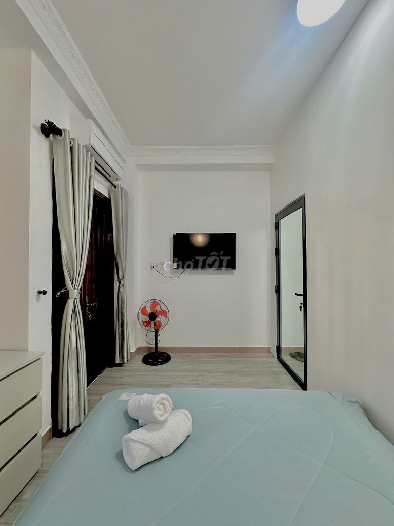 - Nhà đã setup đầy đủ: 9 phòng tiện nghi cao cấp (máy lạnh, tủ lạnh, TV, bếp, nội thất gỗ, PCCC chuẩn).